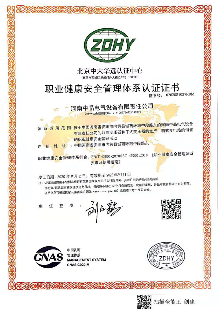 職業(yè)健康安全管理體系認(rèn)證證書(shū)